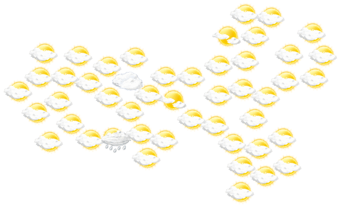 In Semarang sind vormittags und auch am Nachmittag Teile des Himmels mit Wolken bedeckt, die Sonne ist aber zwischendurch sichtbar bei Werten von 25 bis zu 32°C. Abends stören in Semarang nur einzelne Wolken den sonst blauen Himmel und die Temperaturen liegen zwischen 26 und 27 Grad. Nachts verdecken einzelne Wolken den Himmel bei Tiefsttemperaturen von 25°C.
