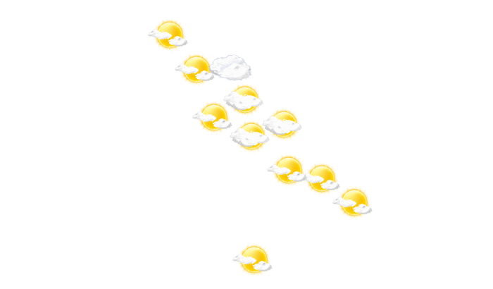 In Bengkulu verdecken von Tagesbeginn bis zum Nachmittag einzelne Wolken die Sonne bei Temperaturen von 24 bis 30°C. Abends gibt es in Bengkulu nur selten Lücken in der Wolkendecke bei Werten von 25 bis zu 26°C. Nachts ziehen Wolkenfelder durch bei Tiefstwerten von 24°C.