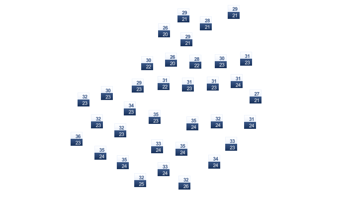 | 31 | 31 | 31 | 31 | 30 | 29 | 28 | 28 | 29 | 30 | 31 | 32 |