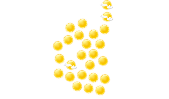 | 16 | 19 | 23 | 29 | 36 | 41 | 43 | 43 | 40 | 33 | 25 | 18 |