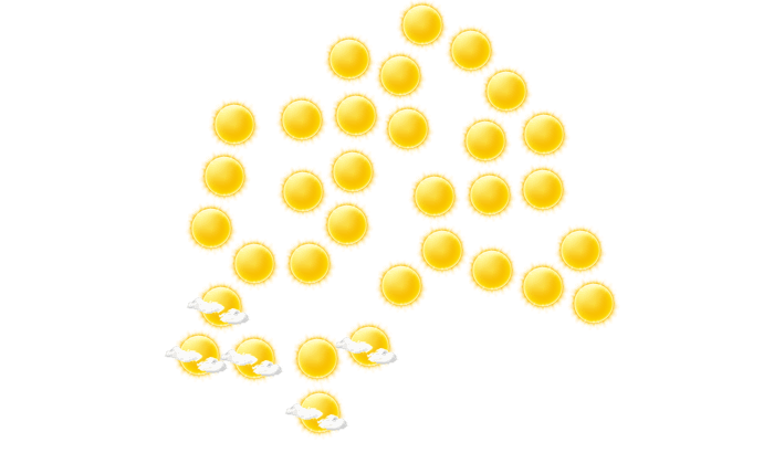 In Ad Dīwānīyah gibt es den ganzen Tag ungestörten Sonnenschein und die Temperaturen liegen zwischen 12 und 25°C. Nachts gibt es einen wolkenlosen Himmel bei Tiefsttemperaturen von 13°C. Mit Böen zwischen 17 und 35 km/h ist zu rechnen.