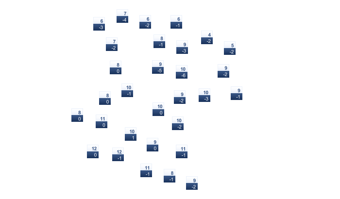 | 19 | 21 | 26 | 31 | 39 | 43 | 44 | 45 | 42 | 36 | 27 | 21 |