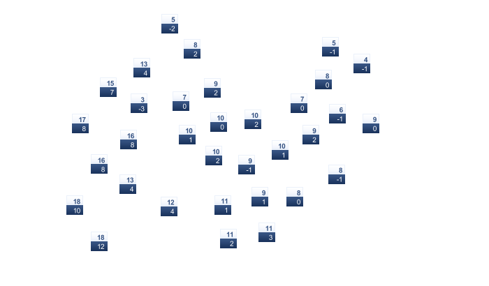 | 19 | 21 | 26 | 31 | 39 | 43 | 44 | 45 | 42 | 36 | 27 | 21 |