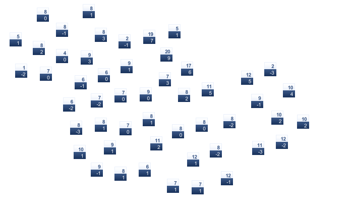 | 19 | 21 | 26 | 31 | 39 | 43 | 44 | 45 | 42 | 36 | 27 | 21 |