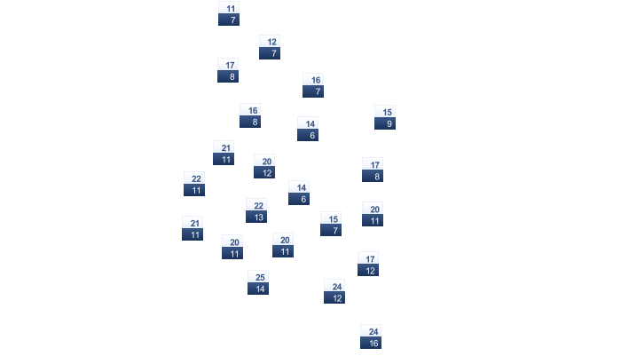 | 7 | 9 | 12 | 17 | 23 | 26 | 28 | 27 | 23 | 18 | 13 | 8 |