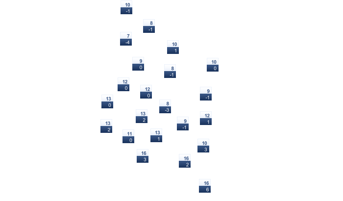 | 19 | 21 | 26 | 31 | 39 | 43 | 44 | 45 | 42 | 36 | 27 | 21 |