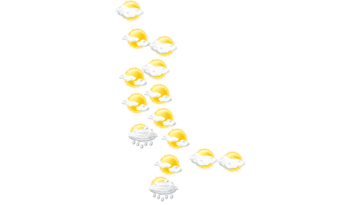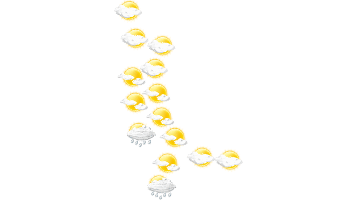 In Urmia gibt es tagsüber lockere Bewölkung bei Temperaturen von 1 bis 9°C. Nachts sind Teile des Himmels mit Wolken bedeckt bei Tiefsttemperaturen von 2°C. Böen können Geschwindigkeiten zwischen 10 und 13 km/h erreichen.