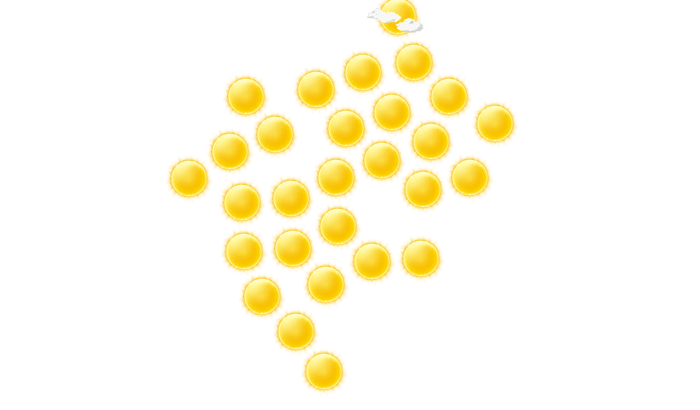 | 7 | 9 | 12 | 17 | 23 | 26 | 28 | 27 | 23 | 18 | 13 | 8 |
