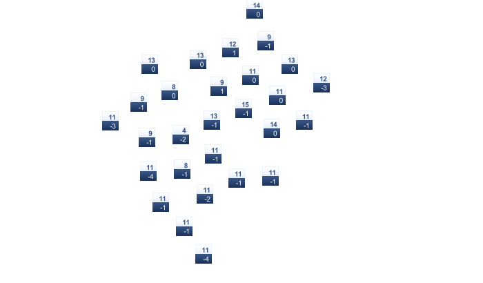 | 19 | 21 | 26 | 31 | 39 | 43 | 44 | 45 | 42 | 36 | 27 | 21 |