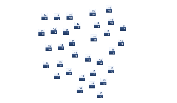 | 4 | 3 | 3 | 5 | 8 | 10 | 12 | 12 | 10 | 8 | 5 | 4 |