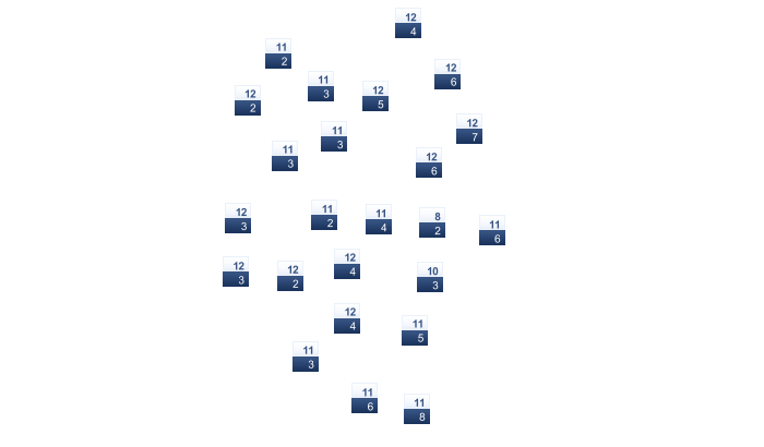 | 4 | 3 | 3 | 5 | 8 | 10 | 12 | 12 | 10 | 8 | 5 | 4 |
