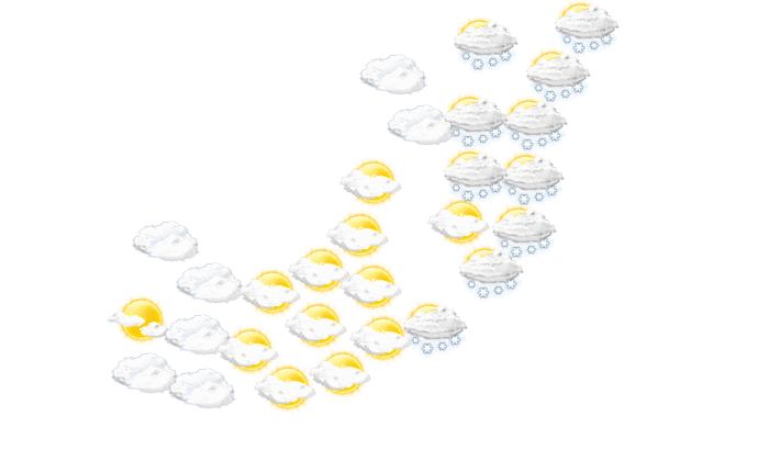 In Kopavogur sind morgens Teile des Himmels mit Wolken bedeckt, die Sonne ist aber zwischendurch sichtbar und die Temperatur liegt bei -8°C. Später kommt es zu Schneefällen und das Thermometer klettert auf -3°C. Abends gibt es in Kopavogur nur selten Lücken in der Wolkendecke bei Temperaturen von -8°C. Nachts fällt Schnee bei Tiefstwerten von -2°C. Aus südöstlicher bis östlicher Richtung weht der Wind und erreicht dabei Geschwindigkeiten von 8 bis 27 km/h. Mit Böen zwischen 14 und 58 km/h ist zu rechnen.