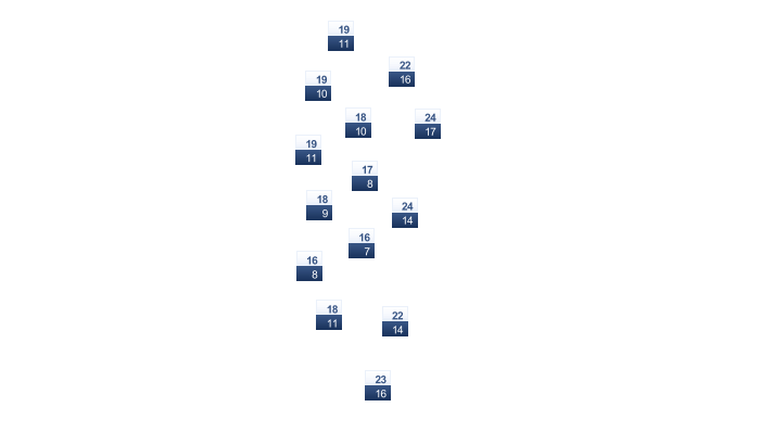 | 21 | 23 | 26 | 31 | 35 | 38 | 40 | 39 | 37 | 33 | 27 | 22 |