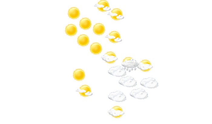 | 8 | 11 | 14 | 19 | 22 | 27 | 30 | 30 | 24 | 19 | 13 | 9 |