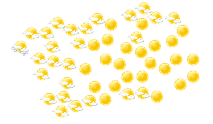 | 8 | 11 | 14 | 19 | 22 | 27 | 30 | 30 | 24 | 19 | 13 | 9 |
