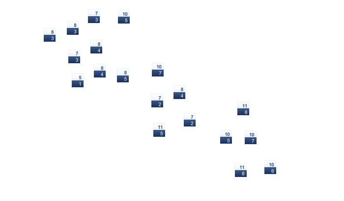 | 8 | 11 | 14 | 19 | 22 | 27 | 30 | 30 | 24 | 19 | 13 | 9 |