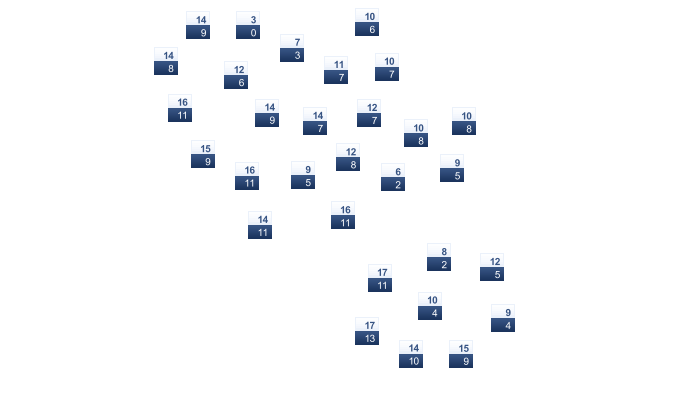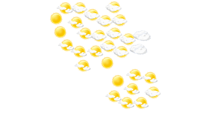 | 8 | 11 | 14 | 19 | 22 | 27 | 30 | 30 | 24 | 19 | 13 | 9 |