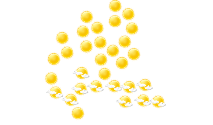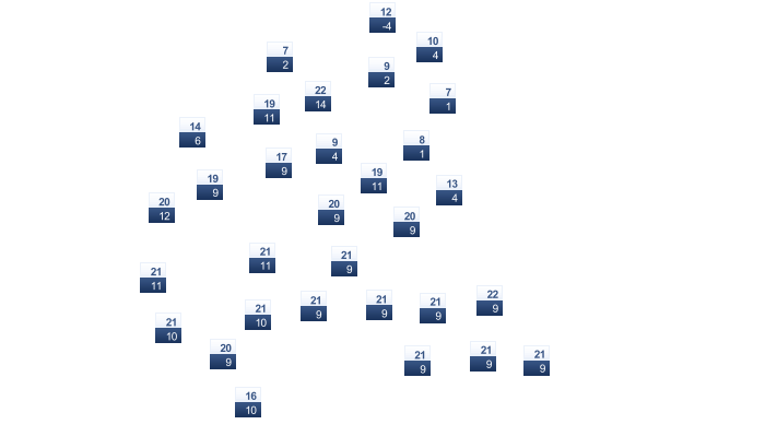 | 8 | 11 | 14 | 19 | 22 | 27 | 30 | 30 | 24 | 19 | 13 | 9 |