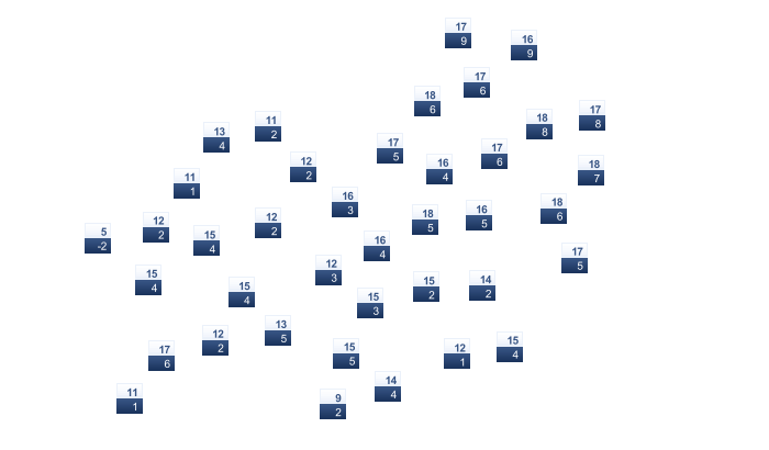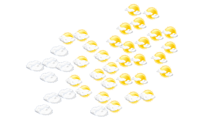 | 8 | 11 | 14 | 19 | 22 | 27 | 30 | 30 | 24 | 19 | 13 | 9 |