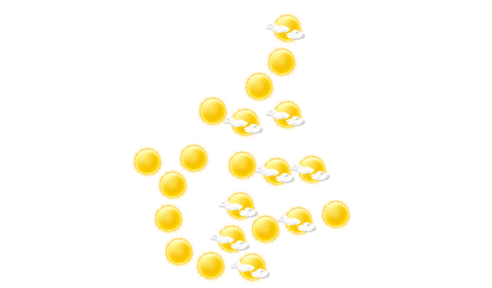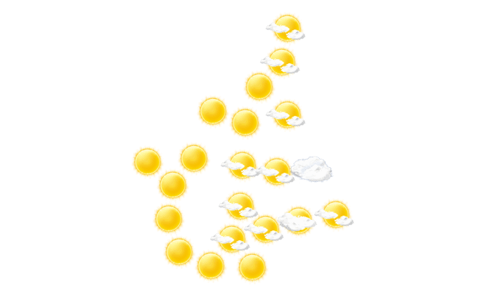 | 8 | 11 | 14 | 19 | 22 | 27 | 30 | 30 | 24 | 19 | 13 | 9 |
