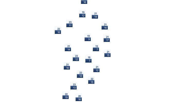 8 | 11 | 14 | 19 | 22 | 27 | 30 | 30 | 24 | 19 | 13 | 9 |