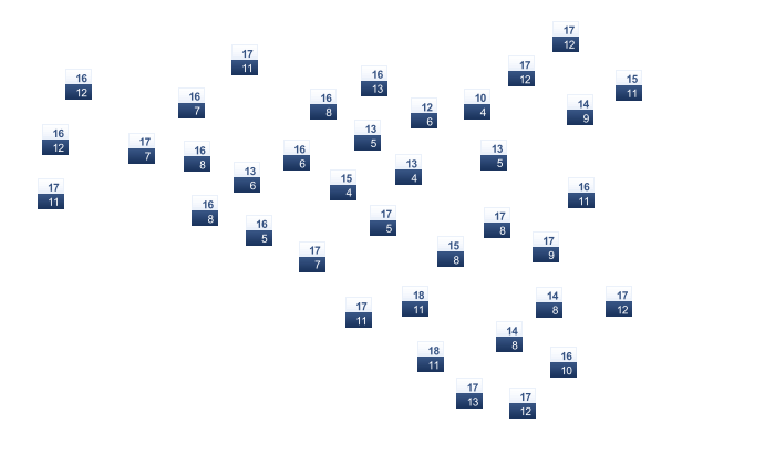 | 8 | 11 | 14 | 19 | 22 | 27 | 30 | 30 | 24 | 19 | 13 | 9 |