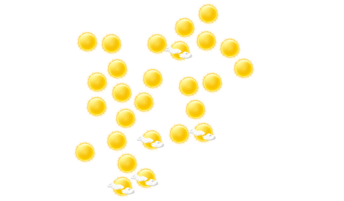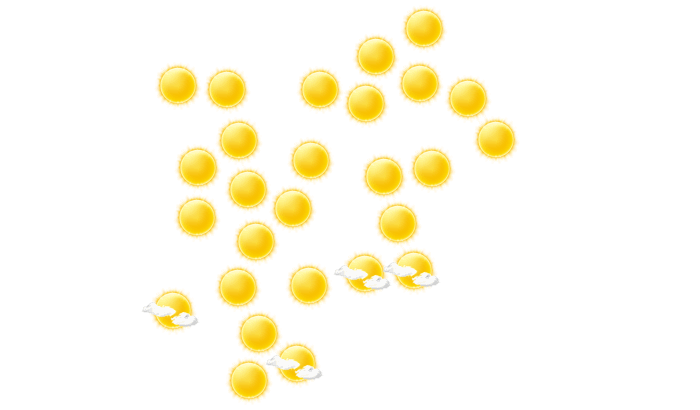 | 8 | 11 | 14 | 19 | 22 | 27 | 30 | 30 | 24 | 19 | 13 | 9 |