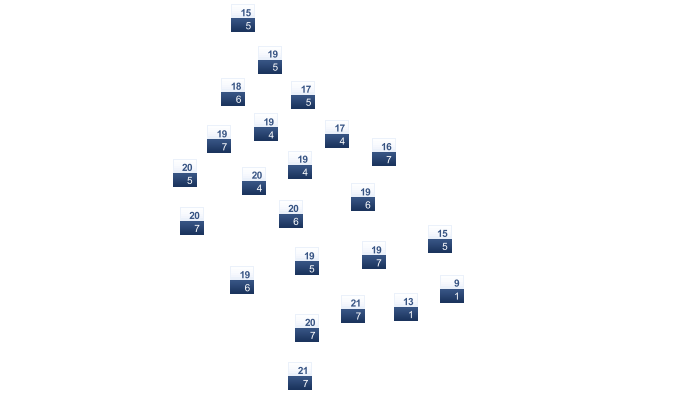 | 8 | 11 | 14 | 19 | 22 | 27 | 30 | 30 | 24 | 19 | 13 | 9 |