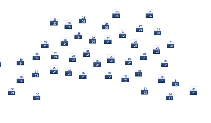 | 30 | 30 | 30 | 30 | 31 | 31 | 32 | 32 | 32 | 31 | 31 | 31 |