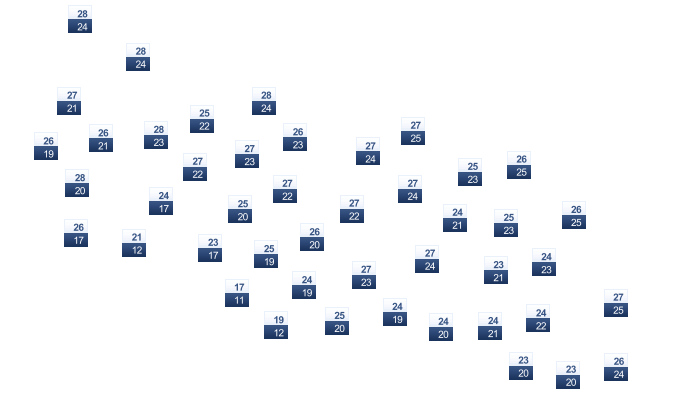 | 23 | 23 | 24 | 24 | 25 | 26 | 26 | 26 | 26 | 25 | 24 | 23 |