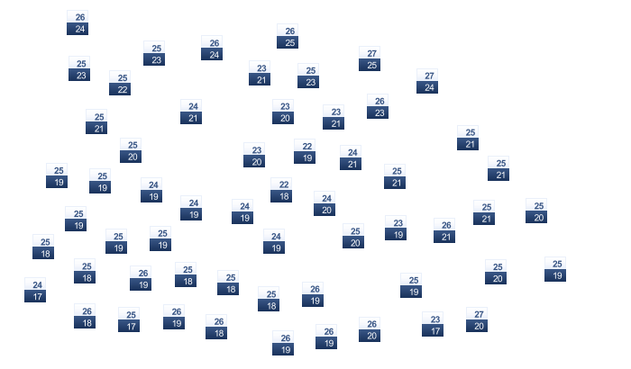 | 23 | 23 | 24 | 24 | 25 | 26 | 26 | 26 | 26 | 25 | 24 | 23 |