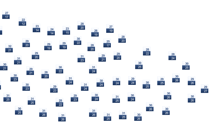30 | 30 | 30 | 30 | 31 | 31 | 32 | 32 | 32 | 31 | 31 | 31 |