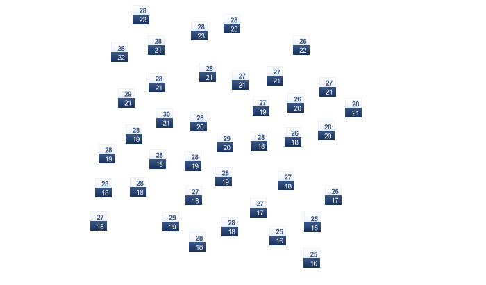 | 23 | 23 | 24 | 24 | 25 | 26 | 26 | 26 | 26 | 25 | 24 | 23 |