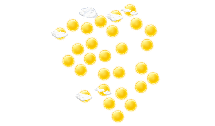 In Tsukuba strahlt am Tag die Sonne bei Werten von 2 bis zu 9°C. In der Nacht ist es locker bewölkt bei Werten von 2°C.