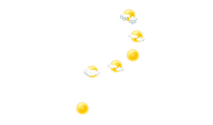 In Kirishima ziehen tagsüber Wolkenfelder durch bei Temperaturen von 9 bis 15°C. In der Nacht ist ein Blick auf die Sterne nur vereinzelt bei sonst wolkigem Himmel möglich bei Tiefstwerten von 10°C.