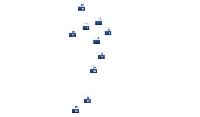 | -13 | -13 | -8 | 0 | 6 | 11 | 16 | 16 | 11 | 4 | -2 | -8 |