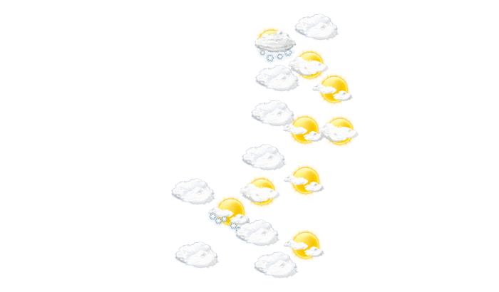 In Sendai wird tagsüber die Sonne von einzelnen Wolken verdeckt bei Temperaturen von -2 bis 0°C. In der Nacht bedecken einzelne Wolken den Himmel und die Temperatur sinkt auf -4°C.