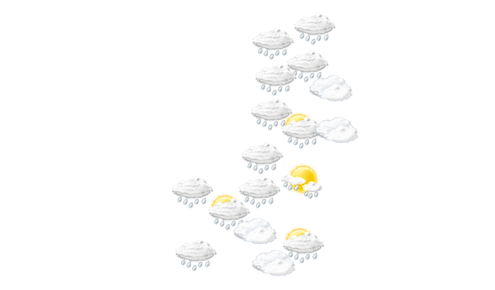 In Niigata wird am Morgen die Sonne von einzelnen Wolken verdeckt bei Werten von 17°C. Darüber hinaus bleibt der Himmel mittags und auch abends grau und es regnet bei Werten von 19 bis zu 22°C. In der Nacht fällt Regen bei Werten von 18°C.