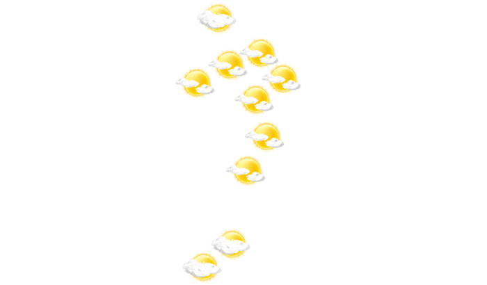 In Ōita ist es am Morgen überwiegend dicht bewölkt bei Temperaturen von 14°C. Darüber hinaus stören vom Nachmittag bis abends nur einzelne Wolken den sonst blauen Himmel bei Werten von 15 bis zu 20°C. In der Nacht gibt es keine Wolken und die Sterne sind klar zu erkennen bei Tiefsttemperaturen von 10°C.