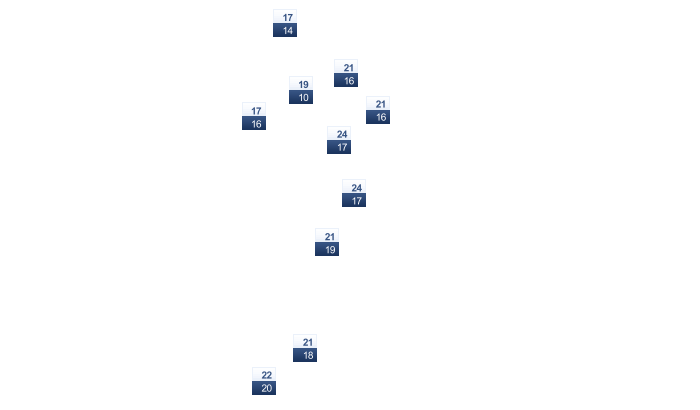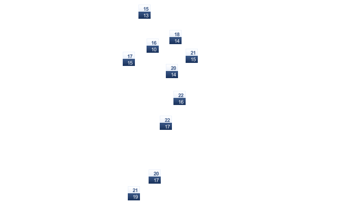| -4 | -3 | 2 | 10 | 18 | 22 | 26 | 26 | 21 | 14 | 6 | -1 |