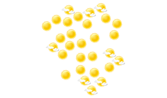 In Oyama zeigt sich am Morgen die Sonne zwischen einzelnen Wolken bei Temperaturen von 8°C. Im weiteren Verlauf des Tages gibt es am Nachmittag und am Abend ungestörten Sonnenschein bei Werten von 8 bis zu 11°C. In der Nacht bilden sich leichte Wolken und das Thermometer fällt auf 6°C.