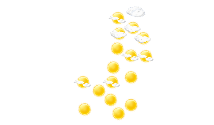 In Tsuruoka bilden sich am Morgen vereinzelt Wolken bei Werten von 15°C. Des Weiteren ist es mittags und auch abends wolkenlos bei Temperaturen von 14 bis 20°C. In der Nacht ist es wolkig bei Tiefsttemperaturen von 14°C.