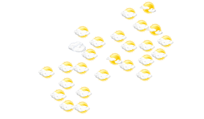 In Tokushima ist es den ganzen Tag bewölkt und die Temperaturen liegen zwischen 16 und 20°C. Nachts bilden sich leichte Wolken bei Tiefstwerten von 13°C.