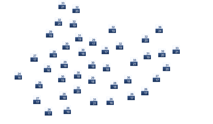| 29 | 29 | 30 | 32 | 34 | 37 | 36 | 35 | 35 | 33 | 31 | 29 |