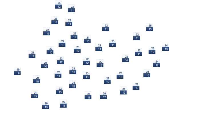 | 23 | 23 | 24 | 26 | 28 | 29 | 28 | 28 | 28 | 25 | 23 | 23 |