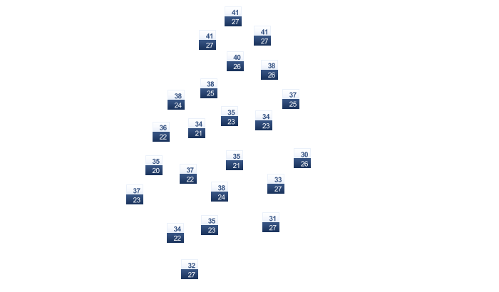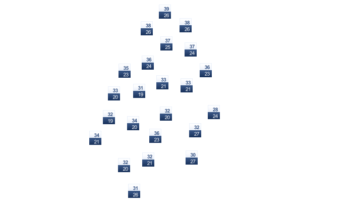| 29 | 29 | 30 | 32 | 34 | 37 | 36 | 35 | 35 | 33 | 31 | 29 |