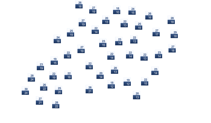 | 29 | 29 | 30 | 32 | 34 | 37 | 36 | 35 | 35 | 33 | 31 | 29 |