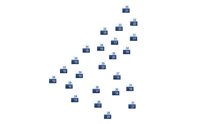 | 29 | 29 | 30 | 32 | 34 | 37 | 36 | 35 | 35 | 33 | 31 | 29 |