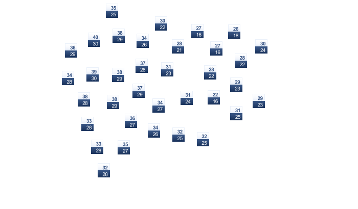 | 29 | 29 | 30 | 32 | 34 | 37 | 36 | 35 | 35 | 33 | 31 | 29 |