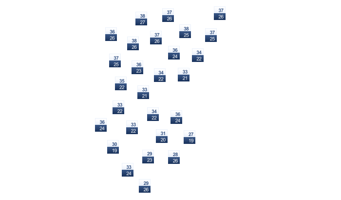 | 29 | 29 | 30 | 32 | 34 | 37 | 36 | 35 | 35 | 33 | 31 | 29 |